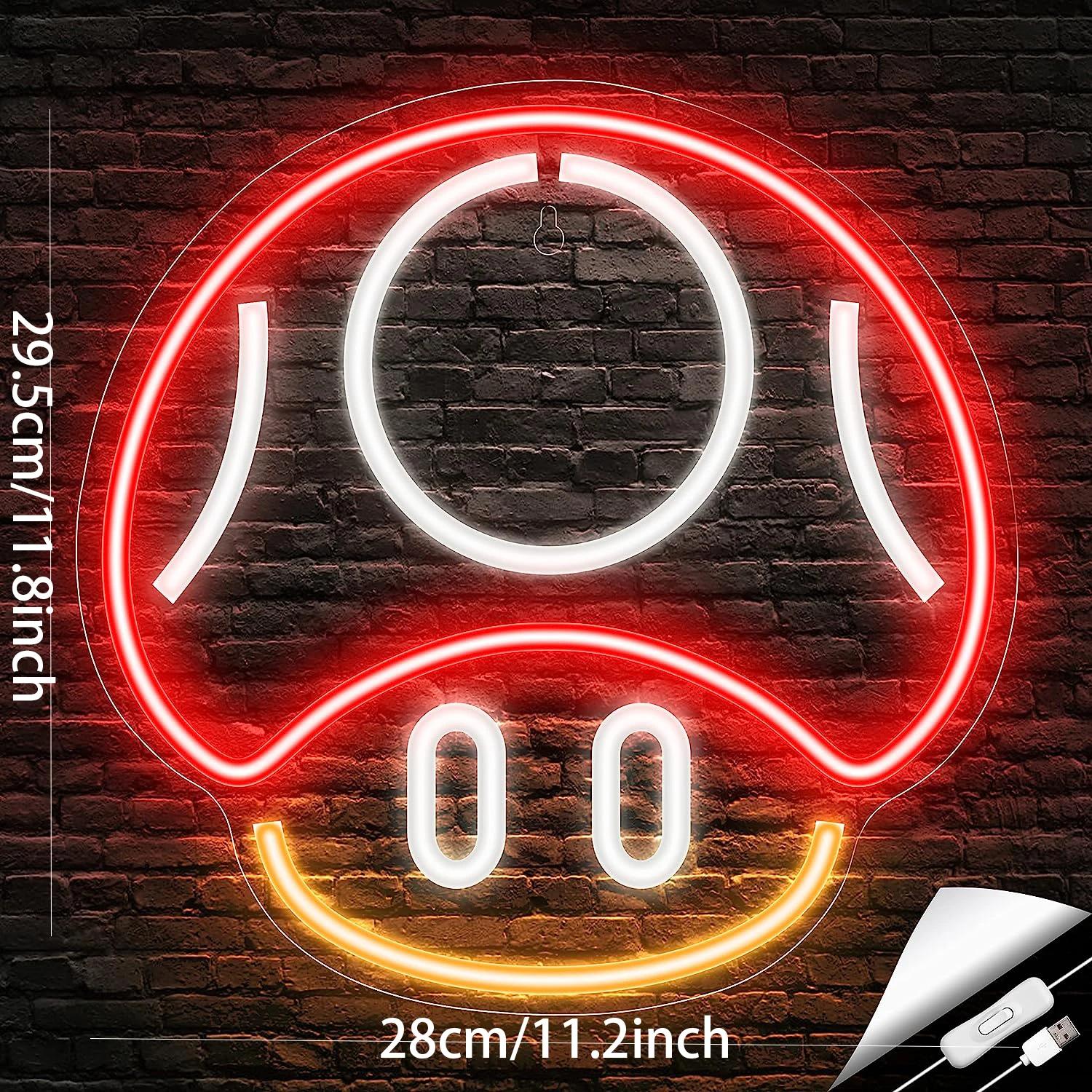 • Novelty Design :This Gaming Mushroom Neon Sign boasts a unique and novelty design, making it a standout piece for any game room, man cave, or kids' room.